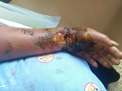 被蛇咬伤后需保持安静和镇定,初步判断是否为毒蛇咬伤,如一时辨认不清,应先按毒蛇咬伤进行初步处理和密切观察。被毒蛇咬伤的肢体应限制活动,在伤口上方的近心端肢体,伤口肿胀部位上方用绷带压迫,阻断淋巴回流,可延缓蛇毒扩散。