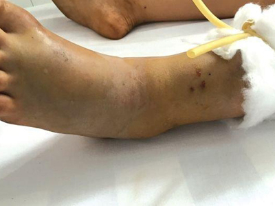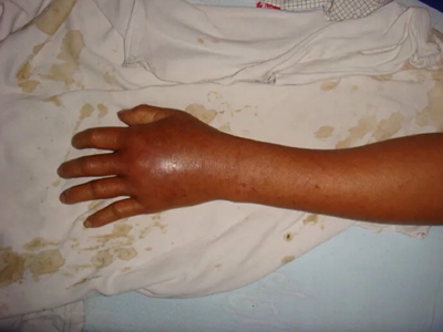 毒蛇咬伤的症状轻重,与毒蛇种类、排毒量、毒力、毒液吸收量、被咬伤部位、中毒途径、就诊时间等密切相关。毒液由注入体内到出现全身中毒症状约需30分钟,个别情况毒液直接注入血管则极快出现。