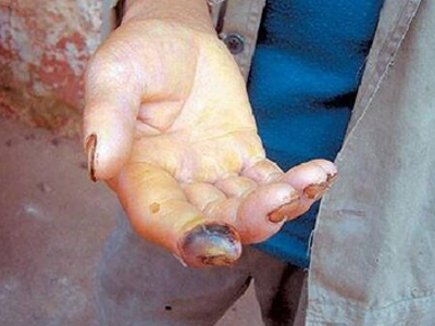 毒蛇咬伤后毒素进入人体,通过血液以及淋巴分散作用到各组织,从而致病。其中银环蛇、眼镜蛇等有神经毒,五步蛇、蝰蛇等有血液循环毒,被蛇咬伤时蛇毒可注入人体,神经毒作用于延髓和脊髓,可引起肌肉瘫痪、神经麻痹等表现。血液循环毒可引起出血、溶血或凝血,血管舒缩功能会发生障碍。