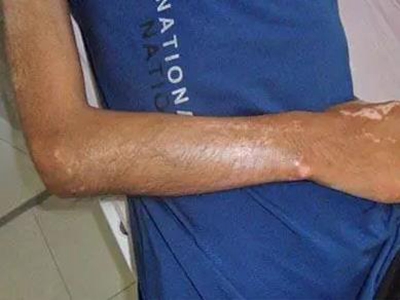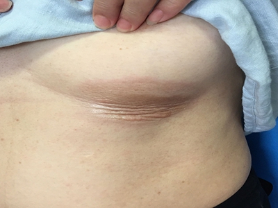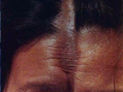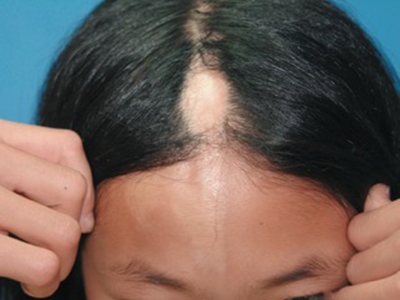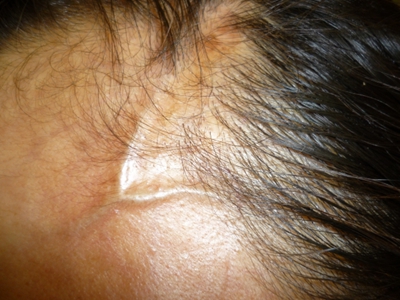 有时皮损如线状,常沿单侧肢体或肋间神经分布,进展迅速,常引起肢体挛缩及骨发育障碍。皮损发生在面额中央时,局部可呈线状显著凹陷,菲薄的皮肤紧贴于骨面,形成刀砍状,有时合并颜面偏侧萎缩,累及头皮时可出现脱发。