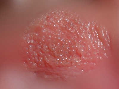 女性生殖器疱疹的症状以丘疹、水疱和皮肤溃疡为主,好发部位为大阴唇、小阴唇、阴道口、尿道口、阴道周围。初起可见丘疹、红斑或丘疱疹,很快发展为集簇或散在的小水疱,随后破溃形成糜烂和溃疡。局部常出现瘙痒、疼痛或烧灼感,可伴随发热、头痛、全身乏力不适等症状。