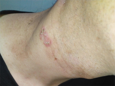 家族性良性慢性天疱疮脖子有红斑结痂图