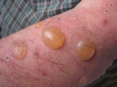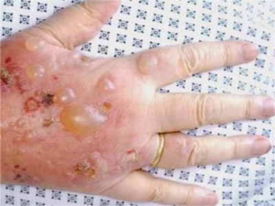 家族性良性慢性天疱疮患者胳膊上出现花生粒大小的水疱,疱液早期清亮,之后逐渐混浊,并伴有瘙痒症状以及腥臭味,需要积极治疗,做好防护措施,以免疾病加剧。