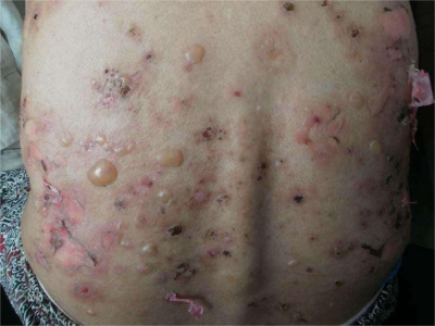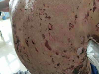 家族性良性慢性天疱疮背部水疱破溃结痂图