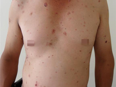 家族性良性慢性天疱疮胸部有许多散在红斑图