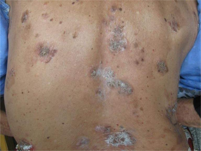 家族性良性慢性天疱疮背部很多红斑有结痂图