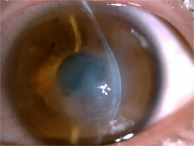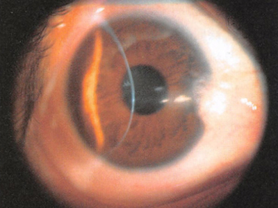 圆锥角膜进一步发展可导致后弹力层破裂,发生急性圆锥角膜,出现角膜急性水肿,视力明显下降。急性水肿一般于6-8周后消退,遗留中央区灶性角膜混浊。长期戴用接触镜导致角膜表面磨损,也可引起圆锥顶端的瘢痕或角膜上皮下的组织增生,这些混浊可引起严重的眩光,也可引起视力下降。
