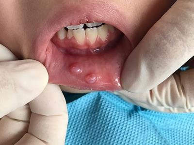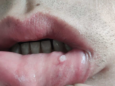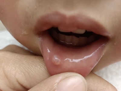 外渗性黏液囊肿嘴唇内侧有个半透明水疱图