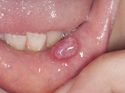 外渗性黏液囊肿为质地较软的疙瘩,频繁破损后会在患处出现一个椭圆形的瘢痕,约黄豆大小,与周围黏膜的界限清晰,患者多无不适症状。