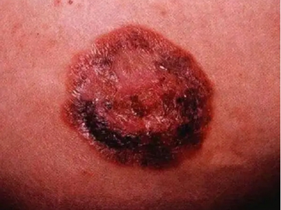 乳房湿疹样癌发生在患者的一侧乳头、乳晕,初期会出现大面积的暗红色红斑,表面干燥,逐渐结痂、脱屑,痂皮、鳞屑脱落后会出现粉红色的基底部皮肤。