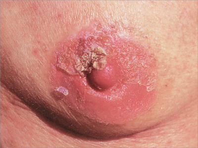 乳房湿疹样癌乳晕红斑伴结痂图