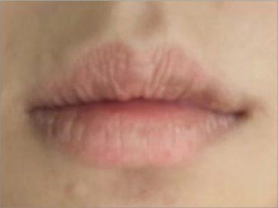 慢性唇炎患者上下嘴唇有比较明显的唇纹,且数量多,下唇左侧以及整个上唇覆盖有一些比较小的皮屑,呈白色,部分已经翘起来,可逐渐脱落。