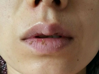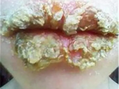 慢性唇炎嘴唇大块暗黄色结痂图