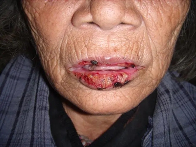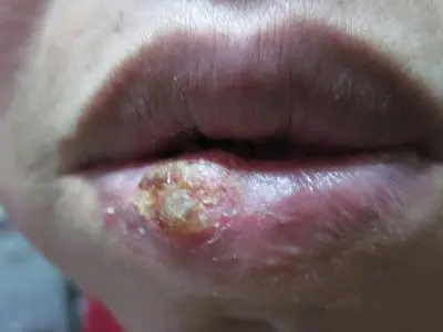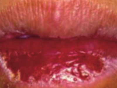 慢性唇炎下嘴唇溃疡结痂图