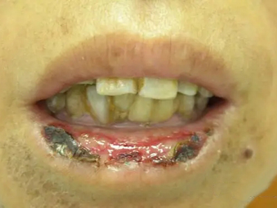 慢性唇炎上嘴唇大块溃疡结痂图