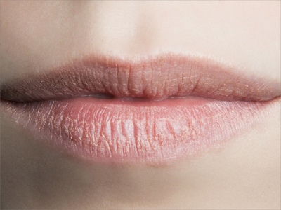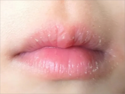 慢性唇炎导致患者的上下嘴唇黏膜发生脱皮,皮屑形状不规则,不可用手撕脱,需使用外用药物涂抹软化改善,同时注意避免舔唇、咬唇。