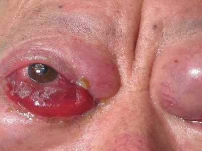 眼眶海绵状血管瘤眼眶见明显的肿块,表面光滑呈红色,能看到明显的毛细血管,眼周黏膜水肿发红,组织向外突出,眼睛分泌物增多。