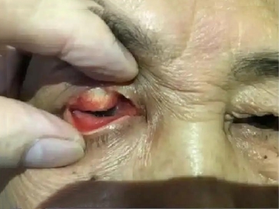 眼眶海绵状血管瘤右眼球严重突出异位图