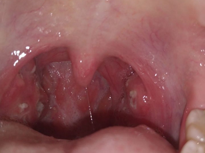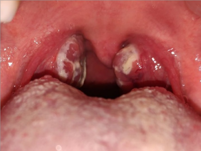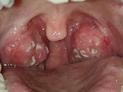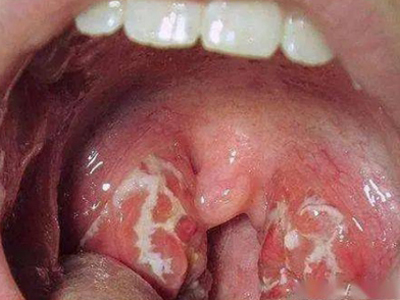 化脓性扁桃体炎喉咙两边出现黄白色膜图