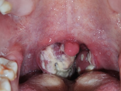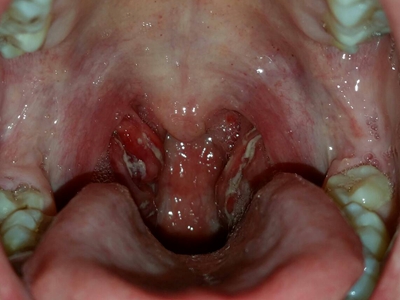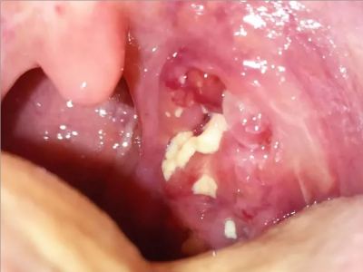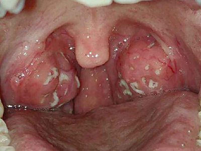 化脓性扁桃体炎喉咙出现溃疡化脓图