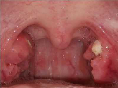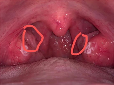 化脓性扁桃体炎单侧扁桃体上有两个黄白色异物图