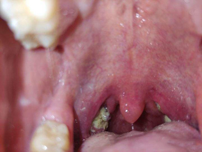 化脓性扁桃体炎咽喉一侧出现脓苔图