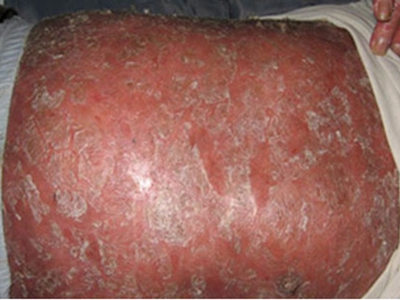 斑状淀粉样变背部大面积发红覆盖厚鳞屑图