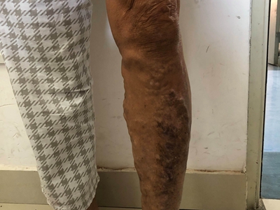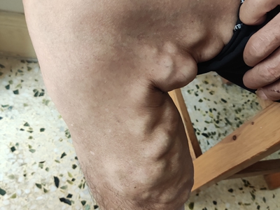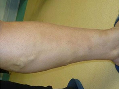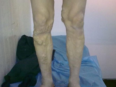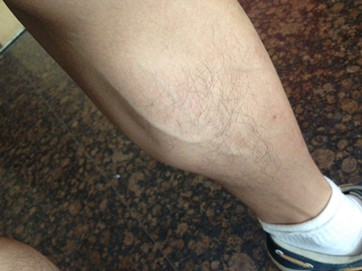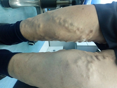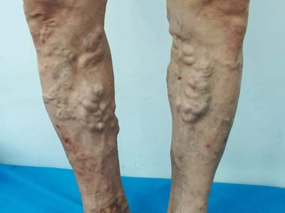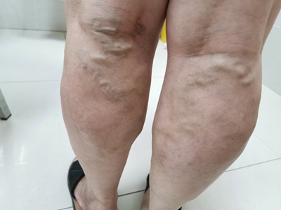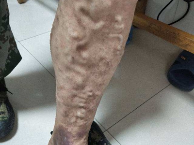 轻度下肢静脉曲张症状表现为小腿皮下有弯弯曲曲的静脉管腔扩张,外观像凸起来的疙瘩、包块,表面略微发青,形状不规则,早期可穿弹力袜缓解症状。