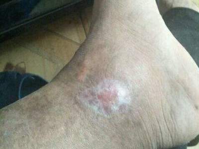 臁疮脚踝上皮肤溃烂坏死图