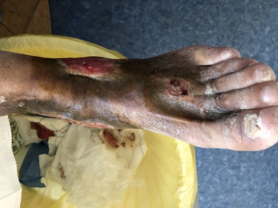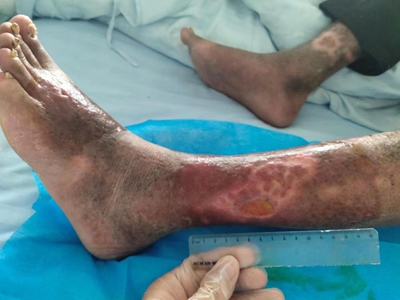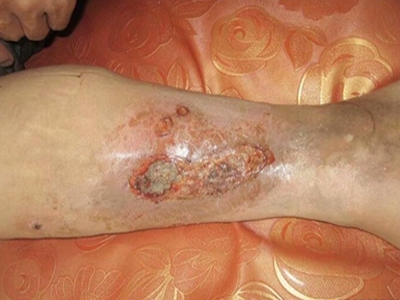 臁疮脚背部溃疡坏死图