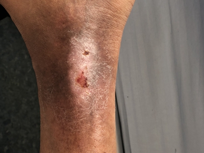 臁疮小腿有结痂和瘢痕图