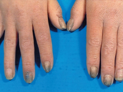 后天性厚甲症双手指甲增厚颜色发黑图