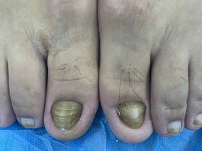 后天性厚甲症脚趾甲发黄增厚图