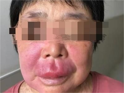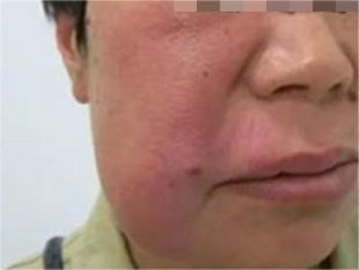 局限性口面部肉芽肿病患者一侧脸颊出现红斑,伴随肿胀,表面皮肤发红、紧绷,皮温升高,左右脸明显不对称,自觉症状明显时可遵医嘱使用肾上腺皮质激素。