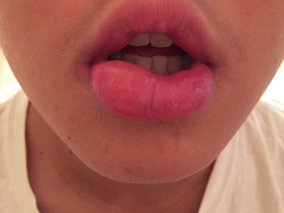 局限性口面部肉芽肿病患者下唇严重红肿,触摸时有轻微疼痛,后期肿胀可波及牙龈、面颊等部位,严重者肿胀部位会出现溃疡或糜烂。