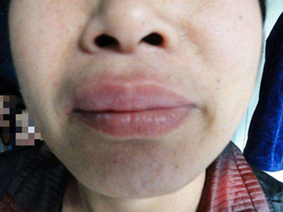 局限性口面部肉芽肿病患者唇部轻微红肿,嘴唇颜色正常,唇周颜色轻微发黄。同时患者唇部皮肤干燥,有薄薄的白色皮屑,严重时会发生皲裂。