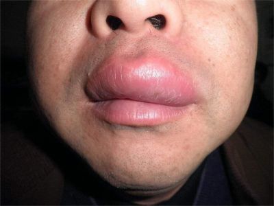 局限性口面部肉芽肿病患者上嘴唇出现肿胀,唇红明显紧绷发亮,严重时会发生单侧或双侧面神经麻痹,有张口受限症状,可注射肾上腺皮质激素。