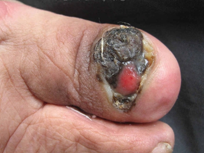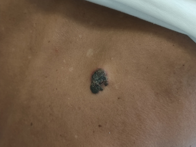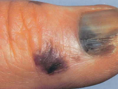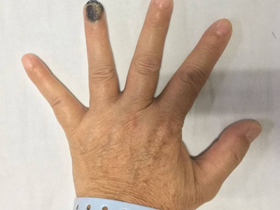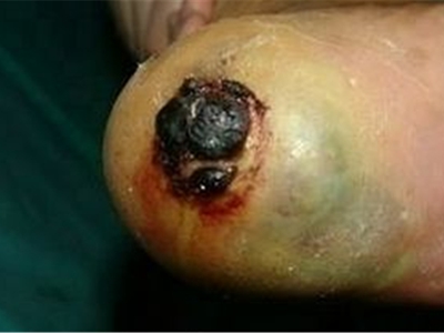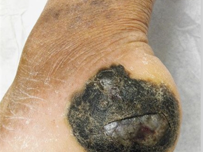 肢端雀斑痣样黑素瘤是来源于黑素细胞、恶性程度较高的肿瘤,多发生于皮肤,亦可见于皮肤黏膜交界、眼脉络膜和软脑膜等处。皮肤表现主要为指甲、头面部等处发生褐色、蓝黑色或黑色斑块或结节,可伴有溃疡、出血、疼痛等症状。