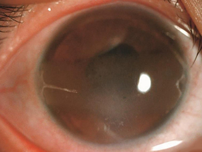 带状角膜病变患者的黑色角膜位置出现浑浊的白斑,形状不规则,几乎占据整个角膜,像是浓浓的烟雾一样,患者会因病变部位遮盖瞳孔而出现视力下降的现象。