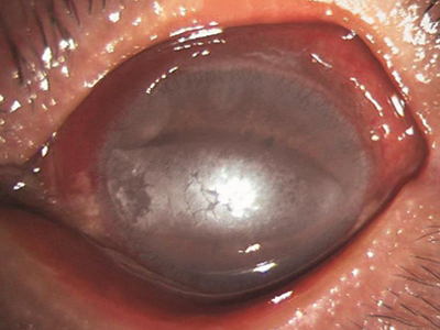 带状角膜病变症状较严重时,会在眼球上出现边界清晰的白色斑块,范围较大,甚至累及整个眼球部。此时应及时就医,必要时需进行手术治疗。