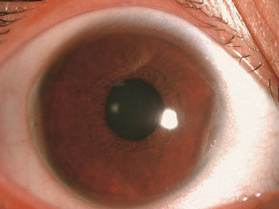 带状角膜病变患者黑眼球表面出现分布不规则的白斑,呈点状、片状,颜色为乳白色,可遮盖瞳孔,同时眼白位置发红,自觉畏光、视物不清。