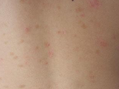 点滴型副银屑病好发于躯干两侧、大腿和上臂等处,屈侧为多,不发生在头、面、掌跖及黏膜部位。皮损多数为淡红色或褐色分散丘疹、斑丘疹或红斑针头至米粒大小,浸润较显著,互不融合,上覆少量不易剥掉的细薄鳞屑,用力刮除后无点状出血,无自觉症状。经数周或数月皮损可消退,留有暂时性色素消退斑,但也可逐渐出现新发皮损,少许患者数年不愈。