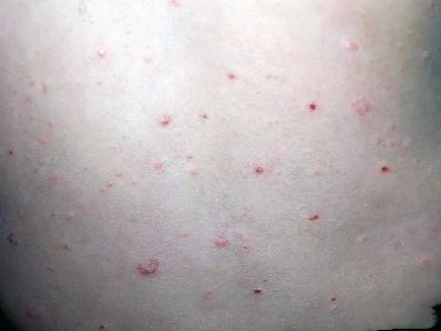 点滴型副银屑病症状表现为患者背上出现许多散在分布的红色丘疹,孤立存在,互不融合,形态一致,呈半球状,大小不等,小的如米粒大小,大的如花生粒大小。