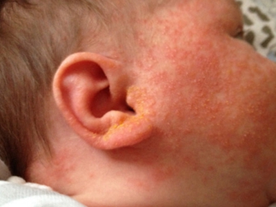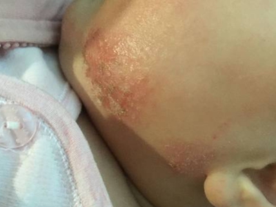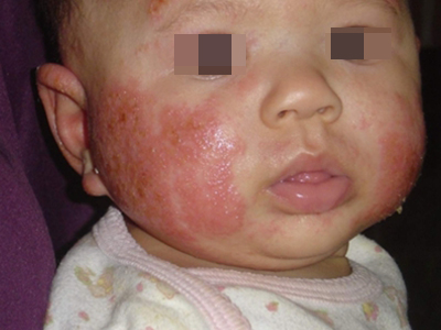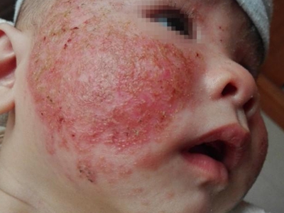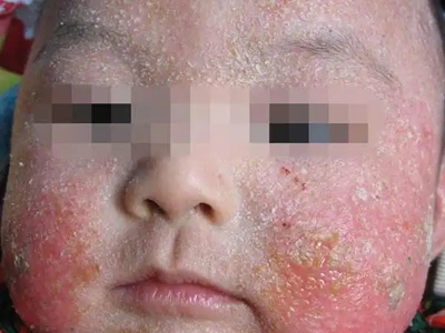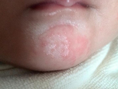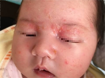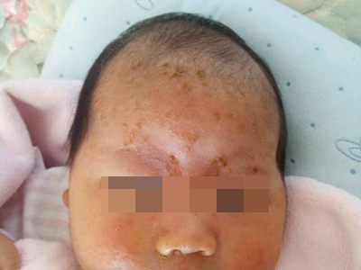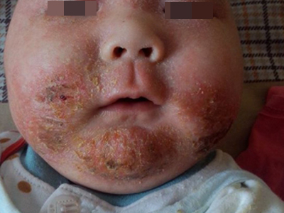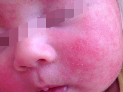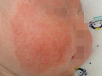 奶癣婴儿脸上出现大片红斑流黄水结痂图
