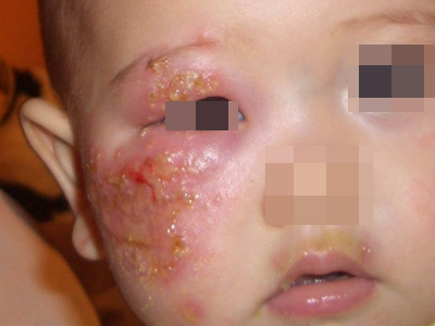 奶癣脸上发红有厚厚的黄黑色痂皮图