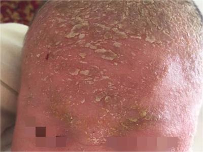 奶癣局限在婴儿群体,发生在头皮时,局部皮肤表面出现皮屑,呈白色或淡黄色,碎纸样外观,部分皮屑边缘翘起,患者自觉局部有瘙痒感,经常不自觉搔抓,在其表面可见血痂。