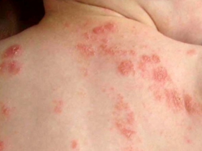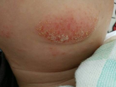 奶癣有时可见患儿头部出现大片红斑,境界不清,颜色略暗,在红斑的基础上出现大小不等的痂皮,边缘略翘起,呈黄褐色,部分痂皮脱落,皮损可逐渐扩大,发展至其他部位。