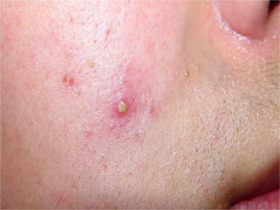 颜面疖痈症状较轻时,表现为脸上有个米粒大小的脓包,四周皮肤有红晕,用针或其他物质刺破表皮后,有黄色的脓液流出,并继发感染,导致脓包变大、增多。