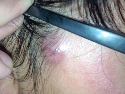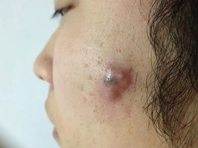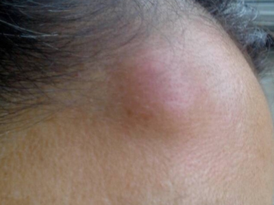 颜面疖痈额头有个淡红色大疙瘩突起图