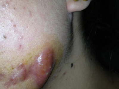 颜面疖痈脸边上长疙瘩烂了流黄水图
